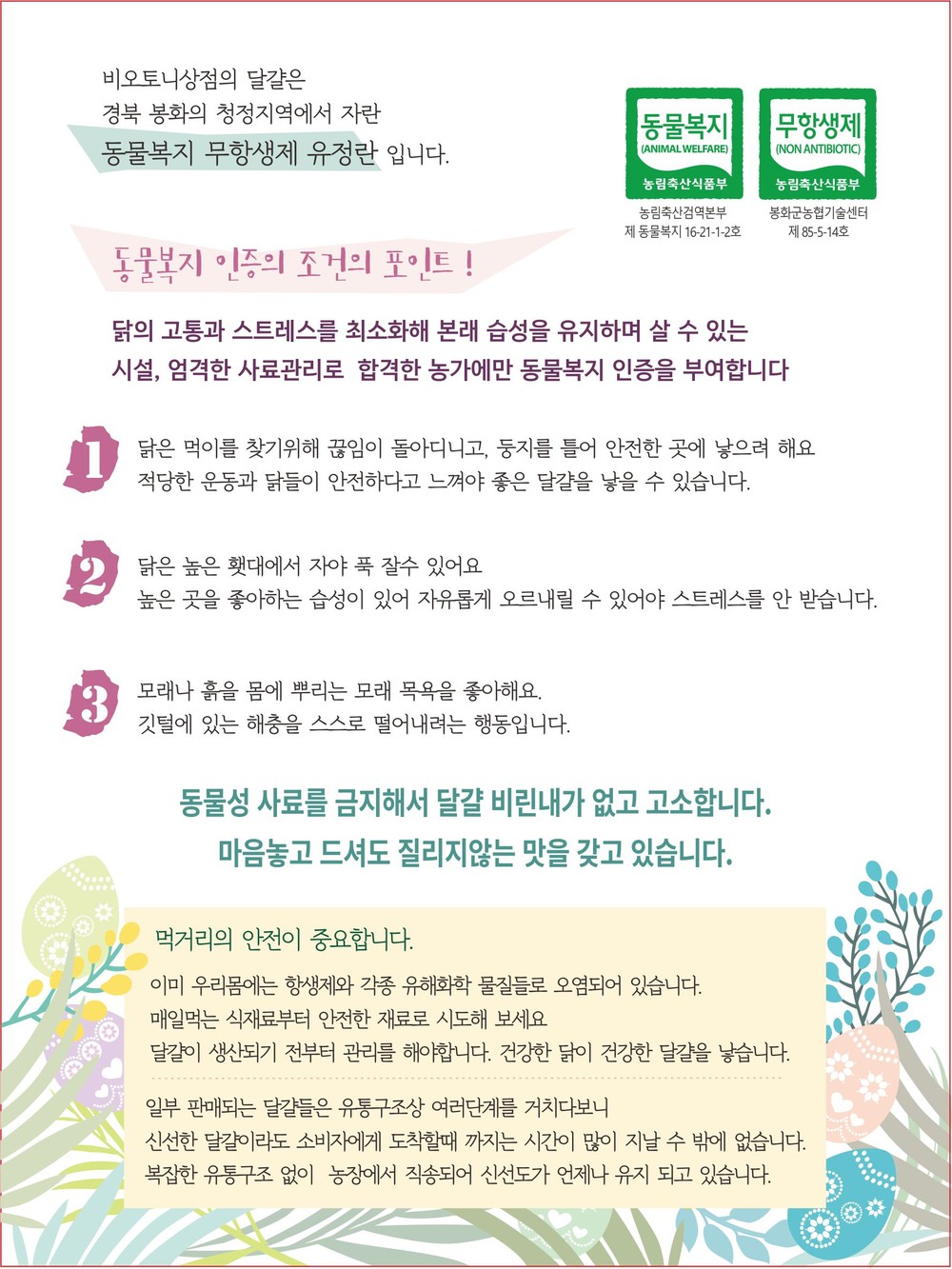 경북 봉화의 청정지역에서 자란 동물복지 무항생제 유정란